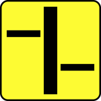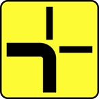 Tabliczka T-6d - tabliczka wskazująca prostopadły przebieg drogi z pierwszeństwem przez skrzyżowanie oraz układ dróg podporządkowanych
