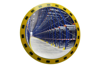 • Lustro magazynowe wewnętrzne z żółto-czarną obwódką, zgodne z dyrektywą CE 92-58. Zwierciadło lustra jest nietłukące, a giętki uchwyt ułatwia instalację i wybranie odpowiednie kąta odbicia.