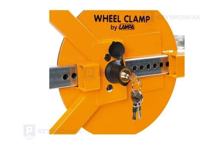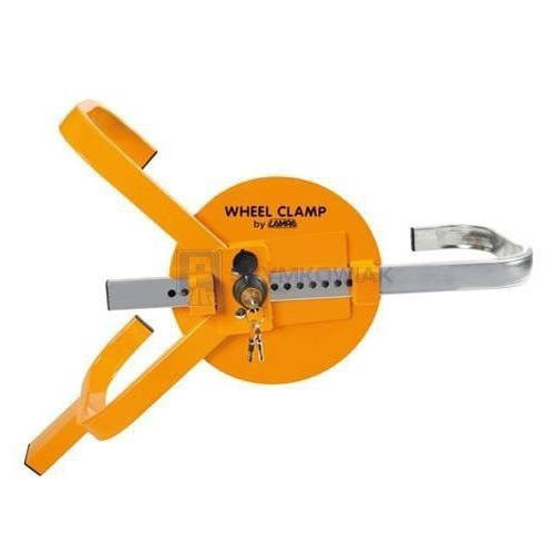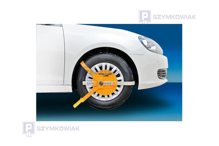 - Stalowa blokada na koło samochodowe 13 - 18 cali. Blokadę na koło zakłada się w celu unieruchomienia pojazdu przez straż miejską czy inne służby. Blokada zamykana jest na zamek.