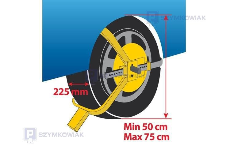 Rozmiar uniwersalny pozwala na zablokowanie pojazdów posiadających koła o średnicy od 13-18 cali, o szerokości do maksymalnie 225 mm.