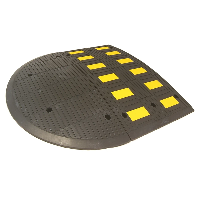 Do produkcji progu wykorzystano wysokiej jakości mieszankę gumy wulkanizowanej, która charakteryzuje się dużą odpornością na ścieranie, promieniowanie UV oraz zmienne warunki atmosferyczne. Materiał ten zapewnia trwałość i stabilność konstrukcji, a jednocześnie skutecznie tłumi uderzenia i zmniejsza ryzyko uszkodzenia pojazdów.