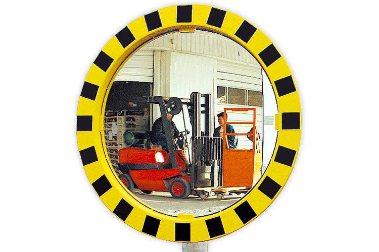 Żółto-czarna obwódka lustra zapewnia jego zgodność z dyrektywą CE 92-58 dotyczącą zaleceń z zakresu Bezpieczeństwa i Higieny Pracy.
