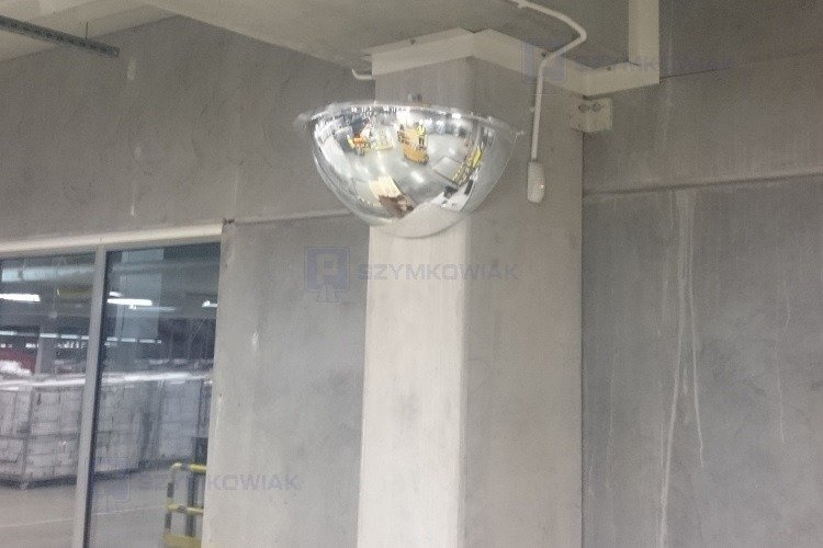 - Lustro kontrolne 1/2 kuli Ø600 do montażu wewnętrznego, przeznaczone do poprawy widoczności i bezpieczeństwa w magazynach, halach oraz ciągach komunikacyjnych.