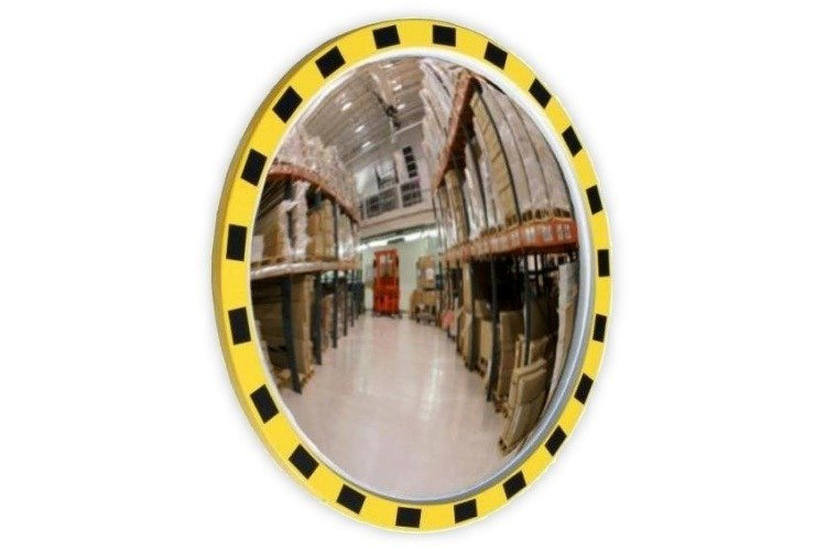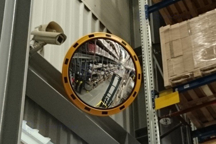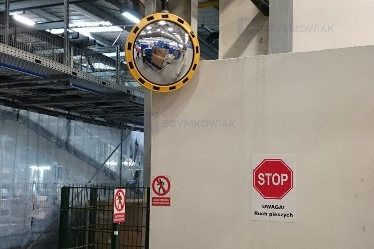 • Lustro magazynowe z żółto-czarną ramą , zgodne z dyrektywą CE 92-58. Zwierciadło lustra jest nietłukące. Lustro odporne na warunki zewnętrzne i promienie UV.