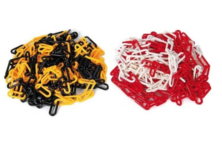 Łańcuch stosowany do słupków wygradzających. Wykonany jest z tworzywa sztucznego. Cechuje się wysoką odpornością i wytrzymałością mechaniczną na rozerwanie 40 kg. Dostępny w odcinkach do 50 metrów w kolorze biało-czerwonym lub w odcinkach do 25 metrów w kolorze czarno-żółtym. Kolory naprzemienne co 0,5 m.