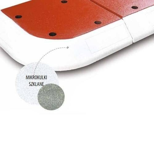 - Kolor: ceglasto-czerwony, na obrzeżach białe szklane mikrokulki