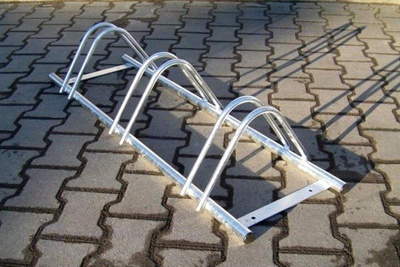 - Modułowy stojak na trzy rowery, ocynkowany ogniowo. Konstrukcja jest w całości spawana. Łącząc z innymi modułami pozwala na uzyskanie wielu konfiguracji ilości stanowisk.