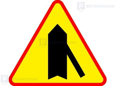 • Znak ostrzega przed skrzyżowaniem z podporządkowanym wlotem - drogą kończącą się pasem włączania z prawej strony.