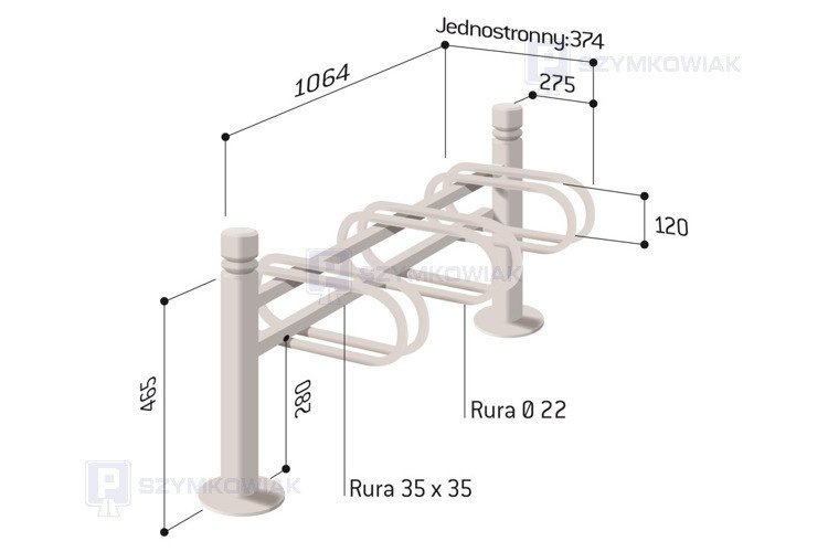 - Stojak rowerowy ocynkowany ogniowo, jednostronny, na trzy rowery. Możliwość zmiany kolory i wykończenia pozwala dopasować stojak do architektury otoczenia.