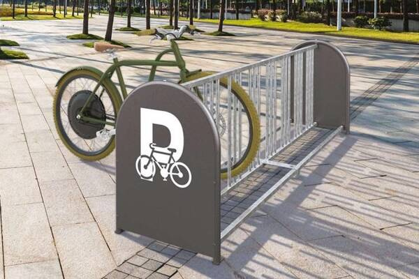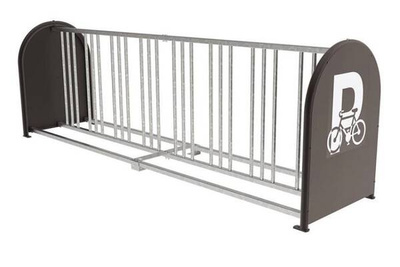 Wykończenie: ocynk ogniowy, boczne panele lakierowane proszkowo na kolor szary (z symbolem parkingu rowerowego)