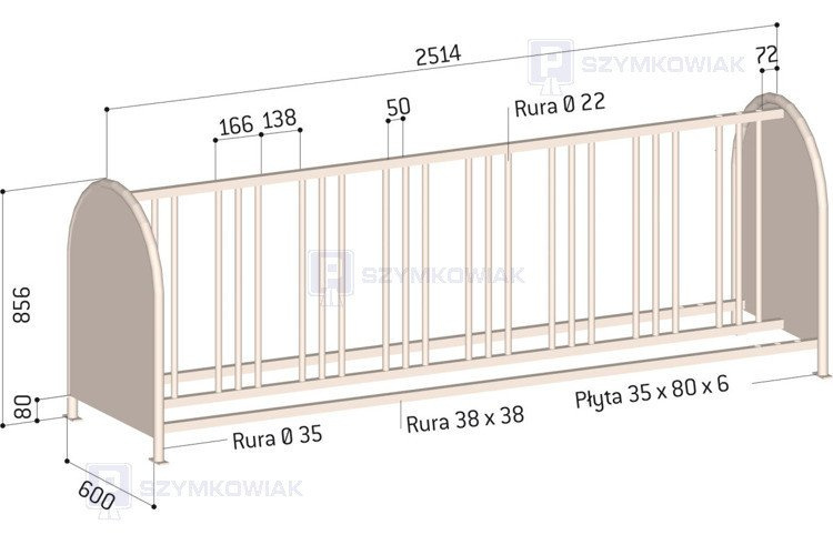 Materiał profili głównych: rura Ø38 mm i pionowe profile 30x30 mm