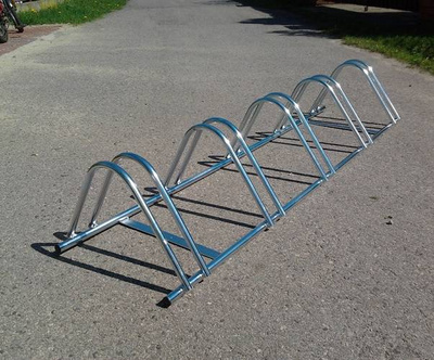 - Modułowy stojak na pięć rowerów, ocynkowany ogniowo. Konstrukcja jest w całości spawana. Łącząc z innymi modułami pozwala na uzyskanie wielu konfiguracji ilości stanowisk.