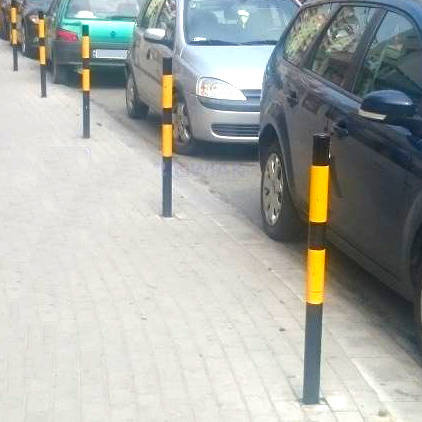 - Solidny, w niskiej cenie, słupek blokujący, ocynkowany i malowany proszkowo, wykorzystywany do stałego wyłączenia miejsca parkingowego lub zabezpieczenia przejścia lub obszaru wyłączonego z ruchu. Wysokość 130 cm, do wbetonowania.