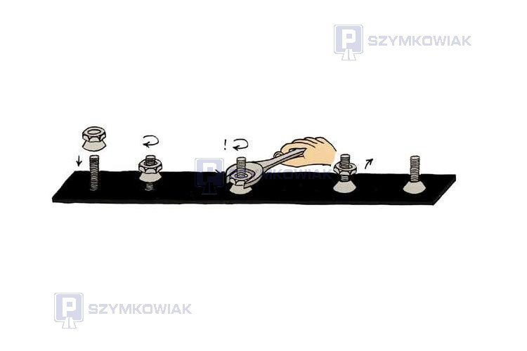 Po wywierceniu w podłożu otworów pod elementy montażowe (pokrywających się z rozstawem otworów montażowych w produkcie) i oczyszczeniu ich należy osadzić w nich kołki rozporowe, następnie wkręcić wkręty dwugwintowe dokręcając je kluczem typu torx albo płaskim kluczem "ósemką" (na łączeniu dwugwintu drewno-metal jest odcinek przewidziany na klucz płaski). Kolejnym krokiem jest osadzenie produktu na wystających gwintach, nałożenie podkładek i płaską "siedemnastką" dokręcenie nakrętki "antywandal", która w końcowej fazie zrywa łeb sześciokątny nie pozostawiając możliwości odkręcenia elementu kluczami nasadowymi. Ostatnią fazą jest ścięcie końcówki gwintu z nacięciem na torx oraz ewentualnego nadmiaru gwintu, który wystaje znad zerwanej nakrętki. Produkt został przez nas odpowiednio dobrany i jest odpowiedni do oferowanych przez nas blokad i stojaków rowerowych.