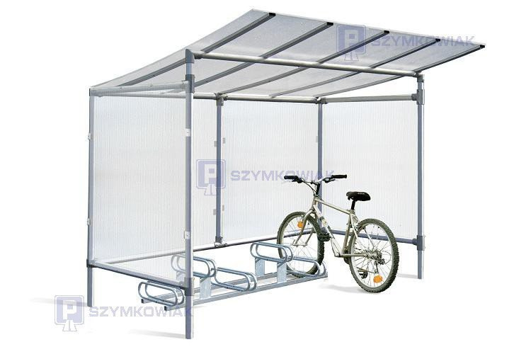 - Wiata rowerowa z możliwością rozbudowania modułowego o kolejne segmenty. Konstrukcja aluminiowa z wypełnieniem z poliwęglanu.