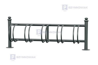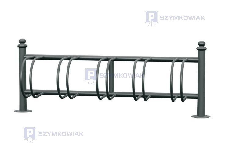 - Elegancki stojak rowerowy stalowo-żeliwny. Wersja jednostronna, na pięć rowerów.