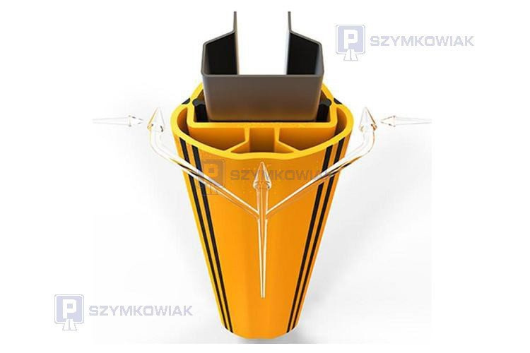 - Elastyczne odboje wykorzystywane do zabezpieczania regałów w magazynach