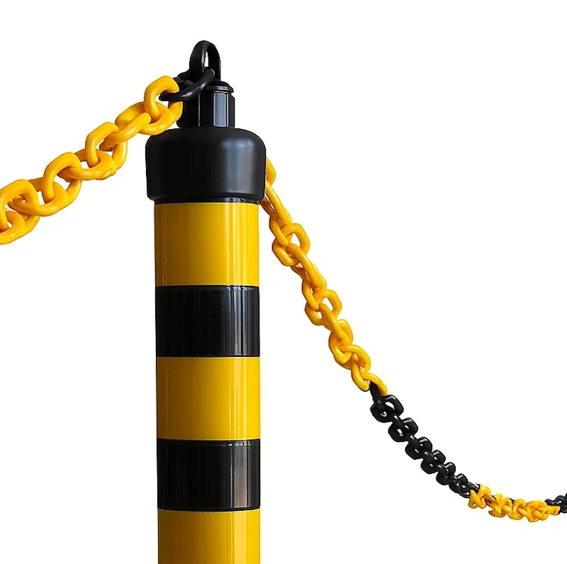 Elastyczne słupki łańcuchowe w dodatkowy sposób odgradzają powierzchnie w miejscach gdzie wymagane jest wydzielenie obszaru niedostępnego np. dla samochodów.