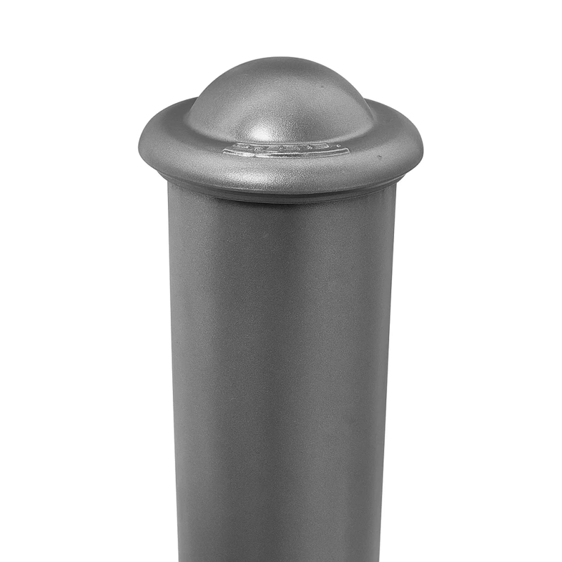 Słupek AGORA wykonany jest z rur stalowych Ø76 mm (opcja: Ø114 mm) zakończonych ozdobną gałką. Słupek przygotowany jest do bezpośredniego montażu w gruncie przez zabetonowanie (opcja: system ruchomy).