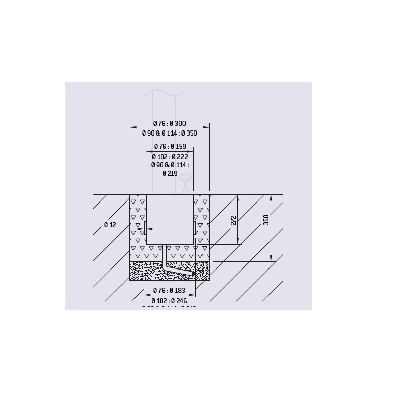 Tuleja montażowa wykonana jest ze stali ocynkowanej ogniowo, z górną pokrywą lakierowaną odpornym na ścieranie poliuretanem w kolorze czarnym. Tuleja posiada system drenu odprowadzającego wodę i inne zanieczyszczenia poza konstrukcję kieszeni. Mechanizm blokujący znajduje się wewnątrz tulei i wykonany jest ze stali nierdzewnej.