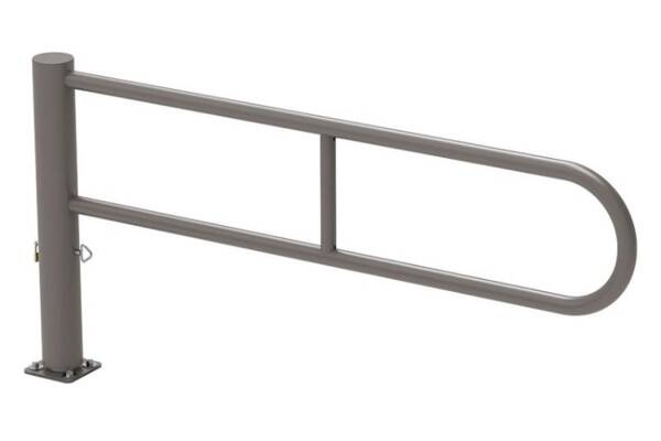 Zamknięcie wykonane jest z zawleczki Ø20 mm i kłódki (dostarczana w zestawie). Rozwiązanie to pozwala na blokowanie barierki w pozycji zamkniętej oraz otwartej pod kątem 90 stopni.