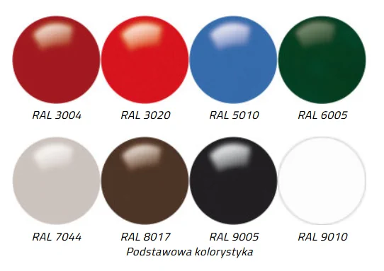 Barierki zabezpieczone są przed korozją warstwą podkładu cynkowego. Wykończenie zewnętrzne stanowi malowanie proszkowe w podstawowej palecie kolorów RAL. Istnieje możliwość wykonania barierek w dowolnym kolorze RAL – na specjalne zamówienie (czas realizacji do 3–4 tygodni).