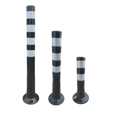 Słupek wykonany jest z elastycznego tworzywa w kolorze czarnym. Posiada 2 ostrzegawcze pasy z białej folii odblaskowej II generacji.
