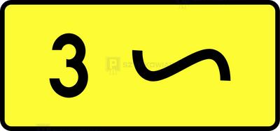 - Tabliczka wskazuje liczbę zakrętów. Stosowana ze znakami A-3 i A-4, gdy liczba wymagających oznakowania zakrętów jest większa niż dwa, a odległość pomiędzy nimi jest mniejsza niż 300 m