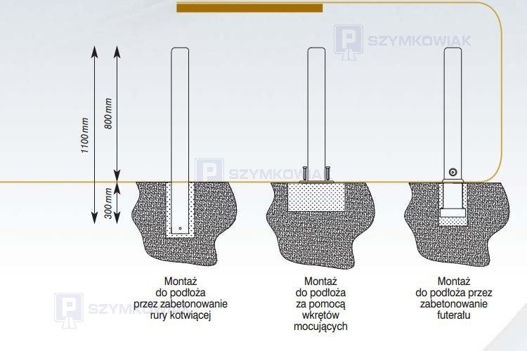Montaż: podstawa do przykręcenia (opcje: bezpośrednie zabetonowanie w gruncie albo system ruchomy zapewniający łatwy demontaż)