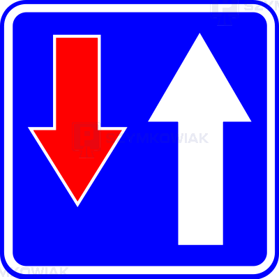 - Oznacza, że kierujący przejeżdżają lub przechodzą przed kierującymi zbliżającymi się z kierunku przeciwnego. Po przeciwnej stronie zwężenia ustawiany jest znak B-31 pierwszeństwo dla nadjeżdżających z przeciwka