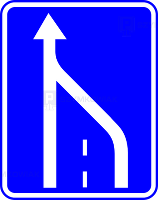 - Oznacza koniec skrajnego pasa ruchu, znajdującego się po stronie wskazanej na znaku. Znak D-14 umieszczony przy pasie ruchu powolnego oznacza koniec tego pasa ruchu
