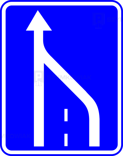 • Oznacza koniec skrajnego pasa ruchu, znajdującego się po stronie wskazanej na znaku. Znak D-14 umieszczony przy pasie ruchu powolnego oznacza koniec tego pasa ruchu