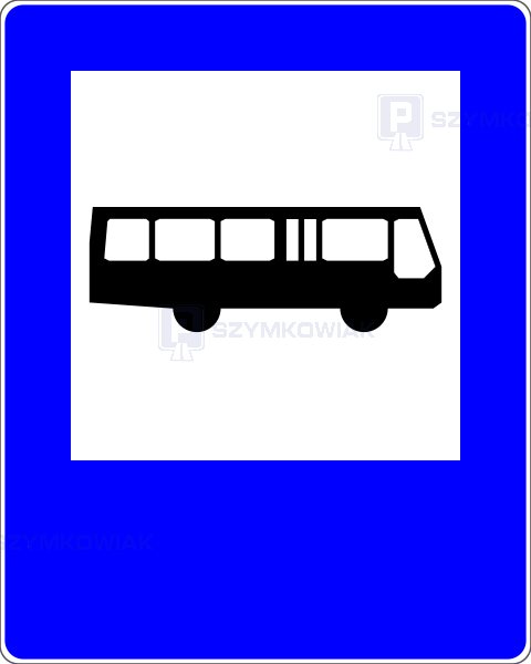 - Oznacza miejsce zatrzymywania się wskazanych na znaku pojazdów wykonujących odpłatny przewóz osób na regularnych liniach