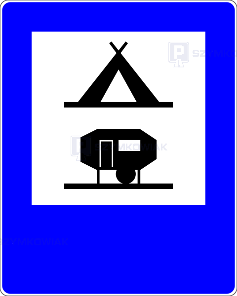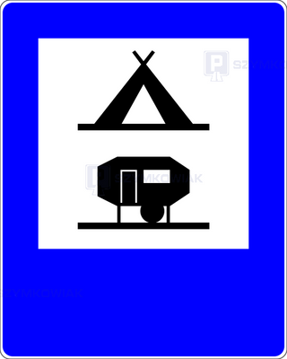 Znak D-31 - obozowisko (camping) wyposażone w podłączenia elektryczne dla przyczep kempingowych