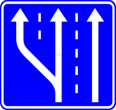 - Oznacza początek pasa ruchu po stronie wskazanej na znaku