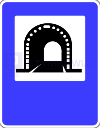 - Oznacza wjazd do tunelu, nakazuje jeszcze włączenie w pojeździe przednich świateł mijania