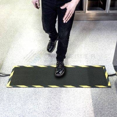 • Gumowa mata tekstylna chroniąca przewody z widocznymi krawędziami ostrzegawczymi.