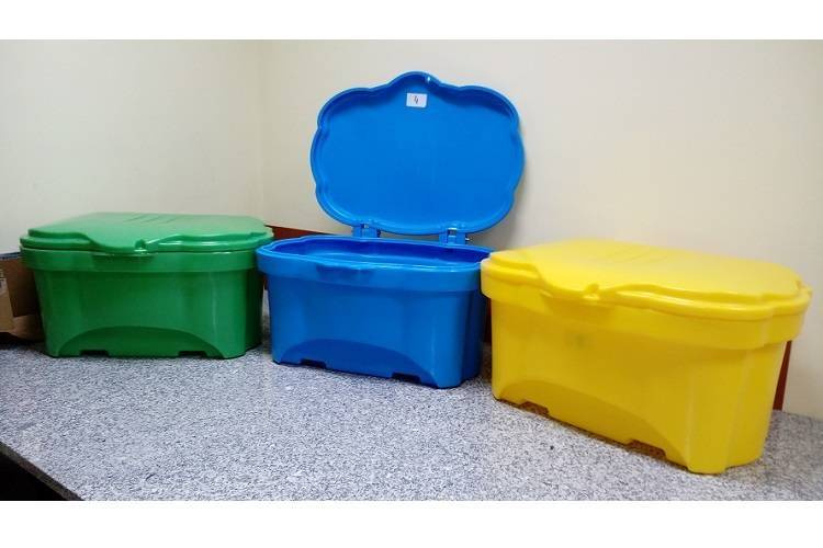 • Wytrzymałe pojemniki na piach przeznaczone są do składowania mieszanki piaskowo-solnej w miejscach uczęszczanych przez pieszych takich jak przystanki lub chodniki.