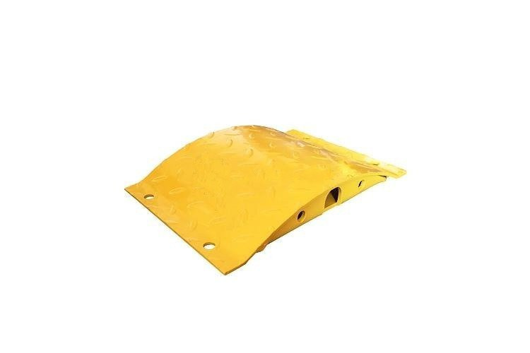Próg kablowy STEEL wykonany jest z ryflowanej blachy stalowej o grubości 5 mm pokrytej farbą epoksydową w ostrzegawczym kolorze żółtym. Konstrukcja modułowa pozwala na łączenie ze sobą dowolnej ilości elementów wewnętrznych. Każdorazowo zalecamy stosowanie pary zakończeń po obu stronach ochraniacza kabli.