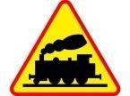 - Znak ostrzega przed przejazdem kolejowym niewyposażonym w zapory lub półzapory. Przejazd może być wyposażony w samoczynną sygnalizację świetlną.