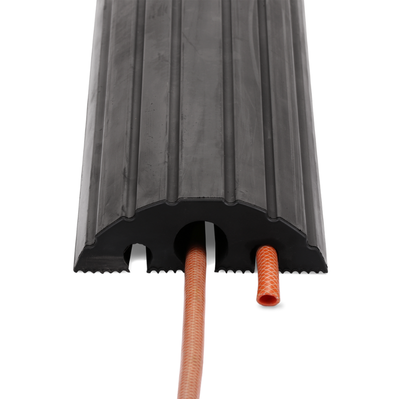Próg kablowy to wytrzymałe rozwiązanie do ochrony kabli, przewodów elektrycznych i rur przed uszkodzeniami mechanicznymi w miejscach, gdzie odbywa się ruch pojazdów. Dzięki solidnej konstrukcji z gumy technicznej próg wytrzymuje nacisk do 40 ton, co pozwala na bezpieczny przejazd zarówno samochodów osobowych, jak i ciężarowych oraz wózków transportowych.