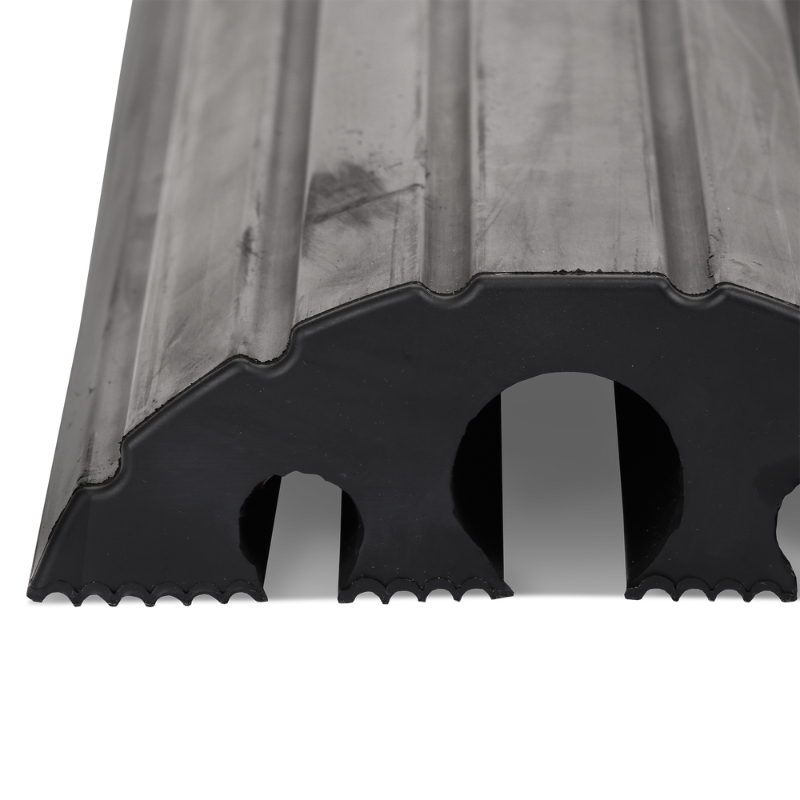 - Próg kablowy 40 ton – wytrzymały próg z gumy technicznej do ochrony przewodów i kabli o średnicy do 45 mm. 3 kanały przepustowe, nośność do 40 ton, odporność na chemikalia i warunki atmosferyczne, wysoka widoczność.