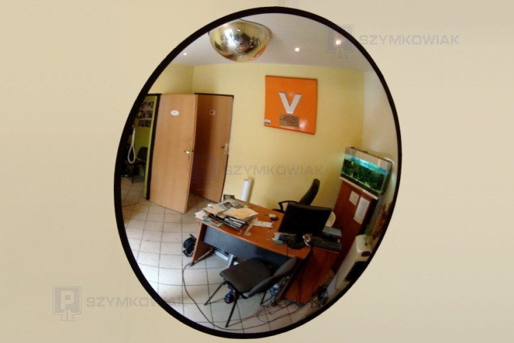 - Wewnętrzne lustro kontrolne Ø800 z poliwęglanu do poprawy widoczności i eliminacji martwych pól w pomieszczeniach. Polecane do sklepów, magazynów i obiektów o podwyższonym ryzyku uszkodzeń.