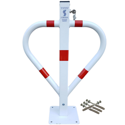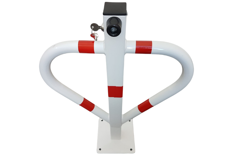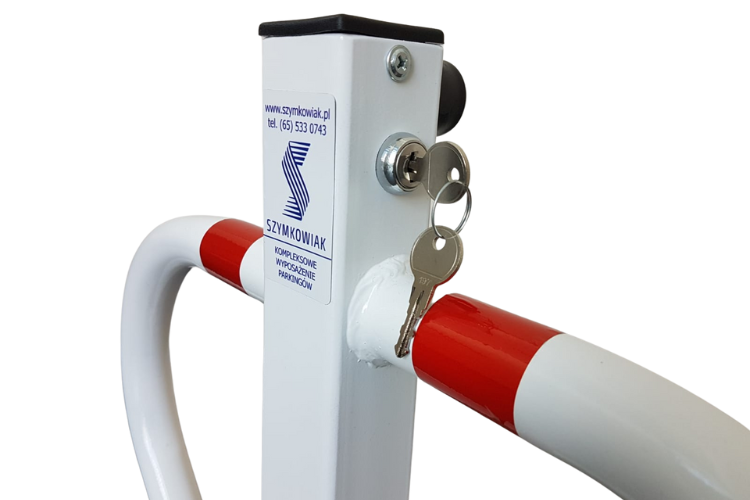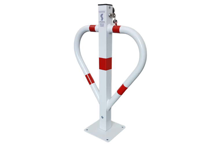 - Blokada parkingowa Motyl 65 cm z zamkiem samozatrzaskowym. Solidna stal ocynkowana, malowana proszkowo, widoczna dzięki czerwonym pasom odblaskowym. Łatwy montaż i obsługa, w zestawie 2 klucze.