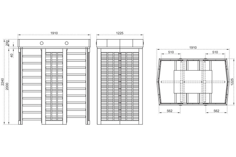 Konstrukcja furty, daszek oraz rotor wykonane są ze stali ocynkowanej ogniowo i lakierowanej proszkowo (opcja stal nierdzewna). Standardowym wyposażeniem są piktogramy LED informujące o statusie i kierunku przejścia oraz oświetlenie przejścia zainstalowane w daszku. Produkt wysokiej jakości do zastosowań wewnątrz i na zewnątrz.