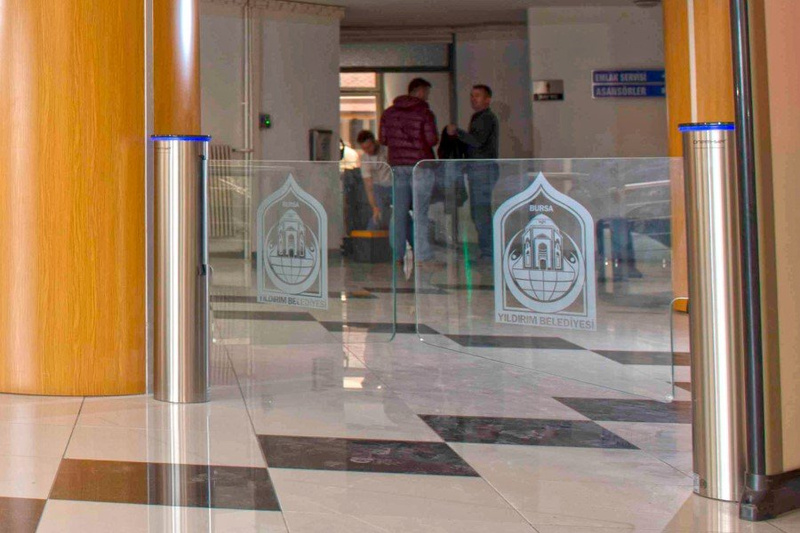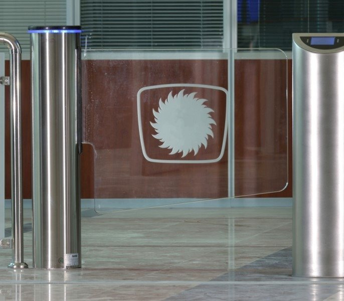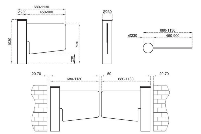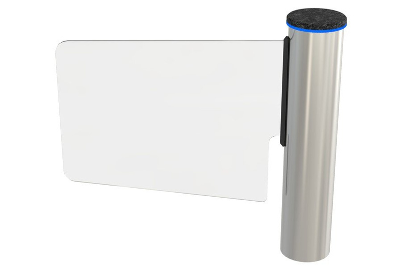 - Bramka obrotowa ze skrzydłem ze szkła hartowanego. Wysokość skrzydła 93 cm.