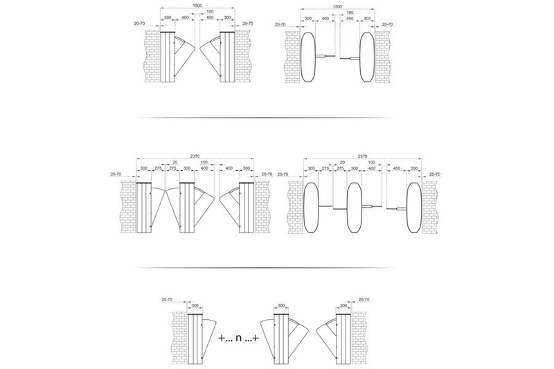 | Działanie: | Prędkość skrzydła jest sterowana elektronicznie dla zapewnienia szybkiego i płynnego dwukierunkowego przejścia. Kontrola przez fotokomórkę obecności pieszego zapewnia większą szczelność i kontrolę dostępu w obu kierunkach lub w jednym wybranym. Przejście składa się z min. 2 sztuk pojedynczych jednostek ustawionych na przeciwko siebie. |