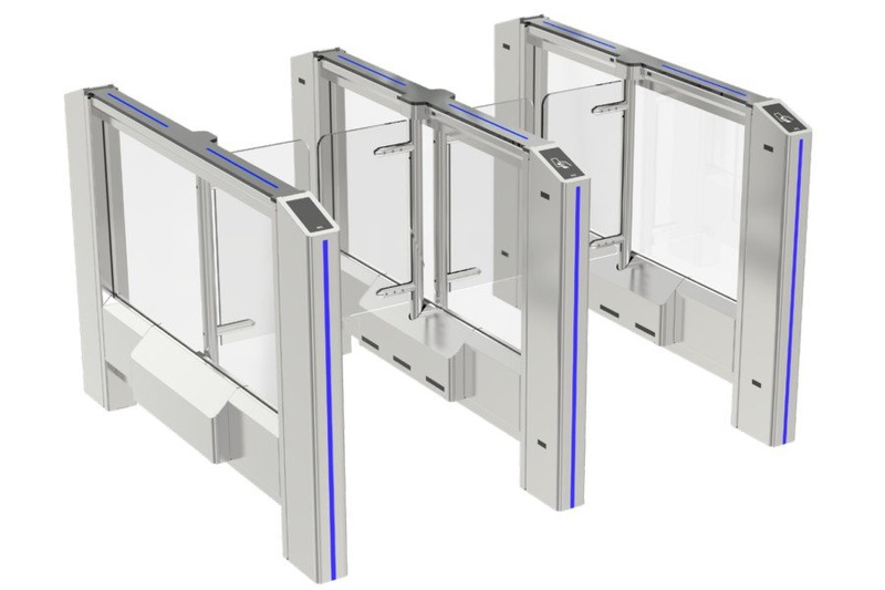 Boczne panele ze szkła hartowanego, sterowanie radiowe (zwolnienie blokady), interfejs dla komputerów PC, RS485, RS232 i LAN, licznik, system wiadomości audio, czujnik alarmu, wygrodzenie boczne, płyta montażowa do montażu na podłodze, różne wysokości skrzydeł |