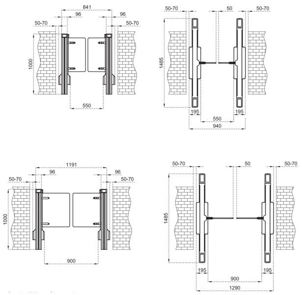 | Działanie: | Ruch skrzydeł sterowany jest elektronicznie celu zapewnienia płynnego dwukierunkowego przejścia. Kontrola przez fotokomórkę obecności pieszego zapewnia większą szczelność i kontrolę w obu kierunkach lub w jednym. Przejście składa się z min. 2 sztuk pojedynczych jednostek ustawionych na przeciwko siebie. |