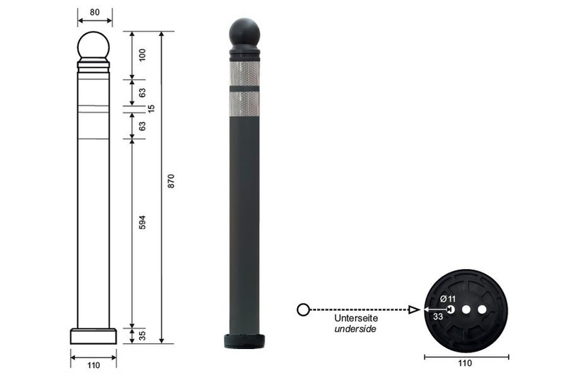 Słupek elastyczny powracający do pierwotnej formy w przypadku najechania. Posiada gniazdo montażowe, które w razie potrzeby pozwala na szybki demontaż i ponowny montaż słupka. Pełnią funkcję nie tylko wygrodzeniową ale też wizualną.